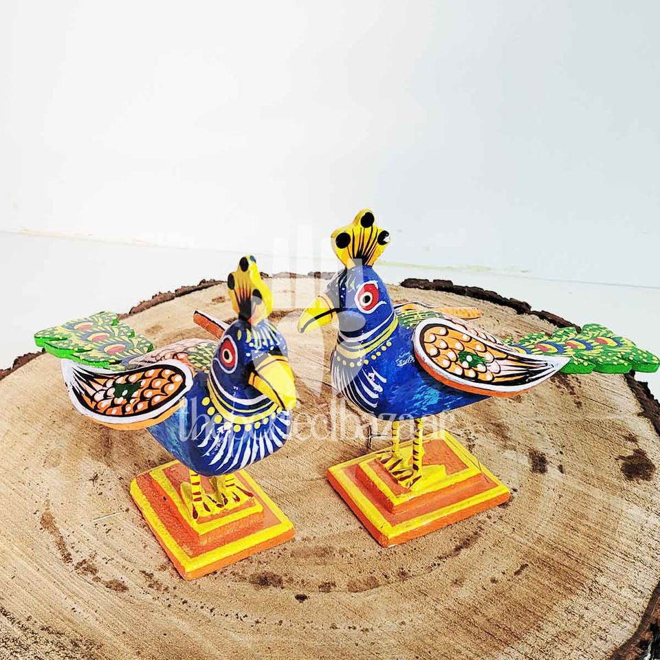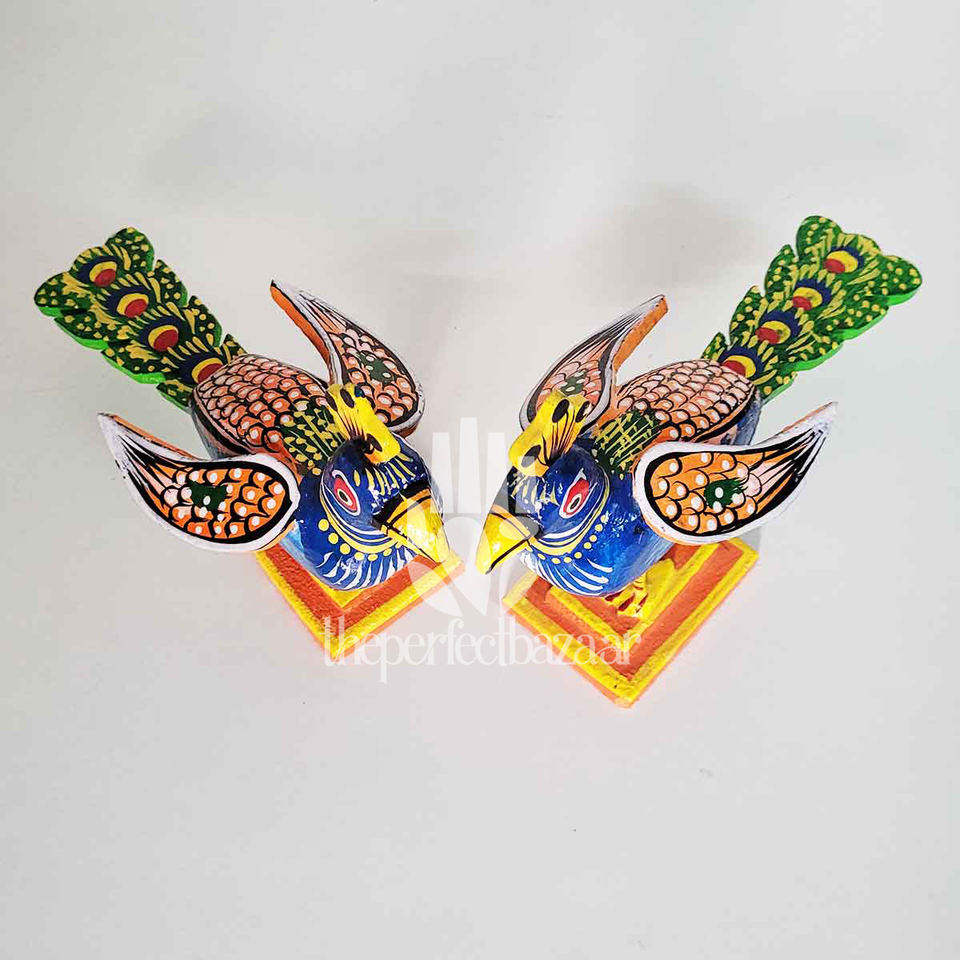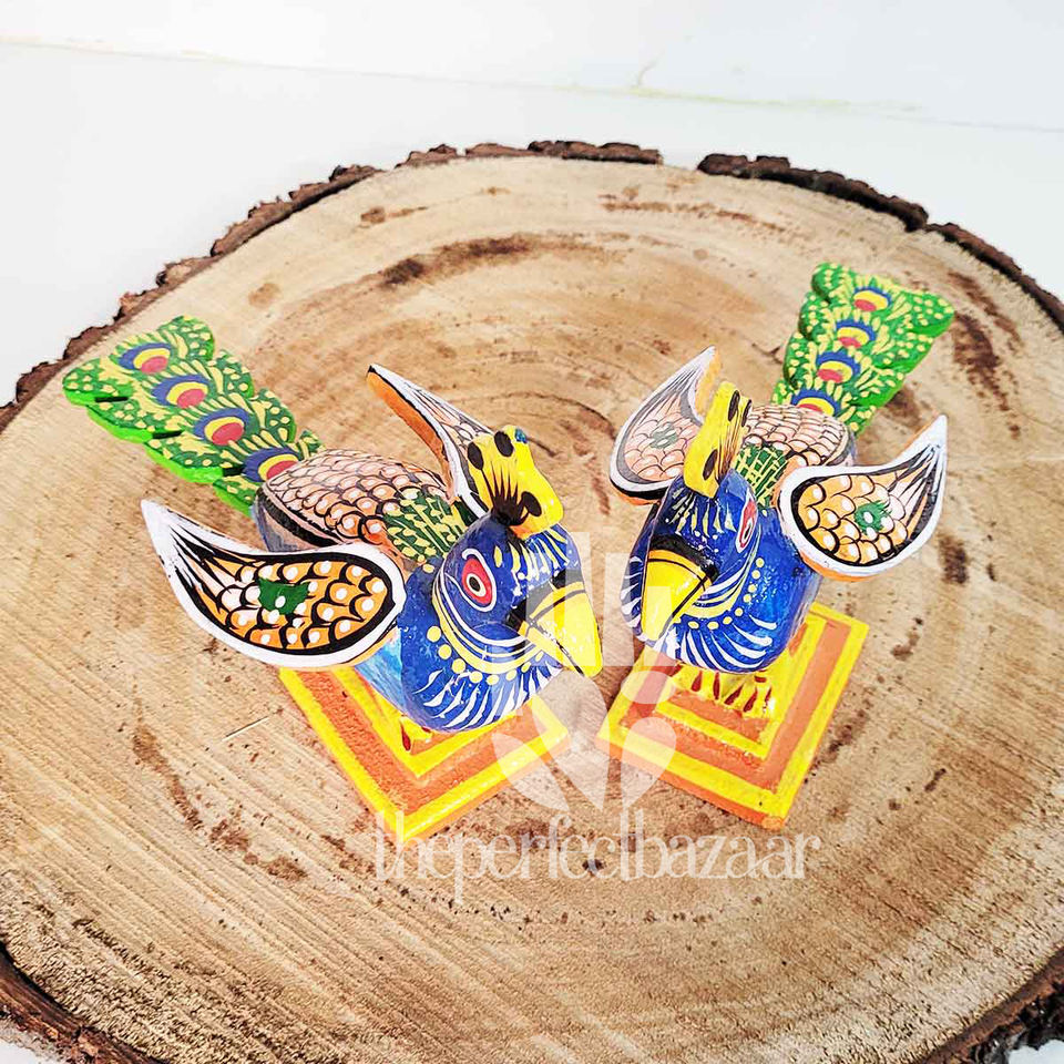 Theperfectbazaar - Juego de Dos Pájaros Pavo Real de Madera Hechos a Mano de Alta Calidad, Pintados a Mano, para Decoración del Hogar, Mesa, Niños y Regalos