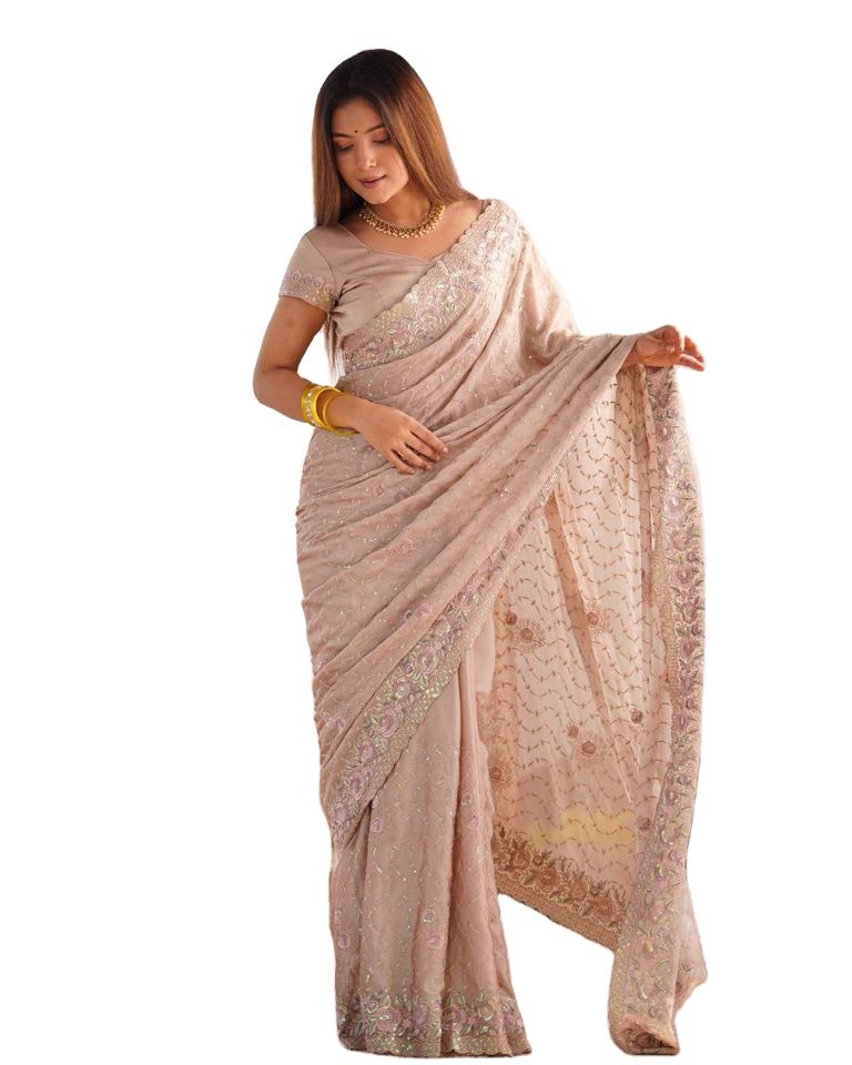 Combinación Perfecta / Trabajo de Diamantes Italianos, Especial para Fiestas de Invierno, Tela de Viscosa Fácil de Drapear, Sari con Blusa a Juego