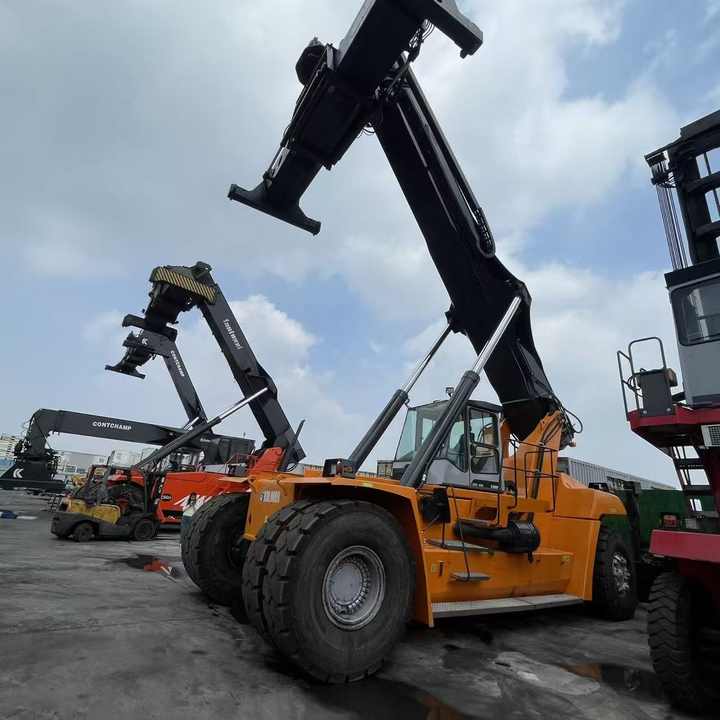 Apilador de contenedores Kalmar DRT450 usado en perfectas condiciones, con capacidad para 45 toneladas, equipo de manipulación de contenedores para logística.