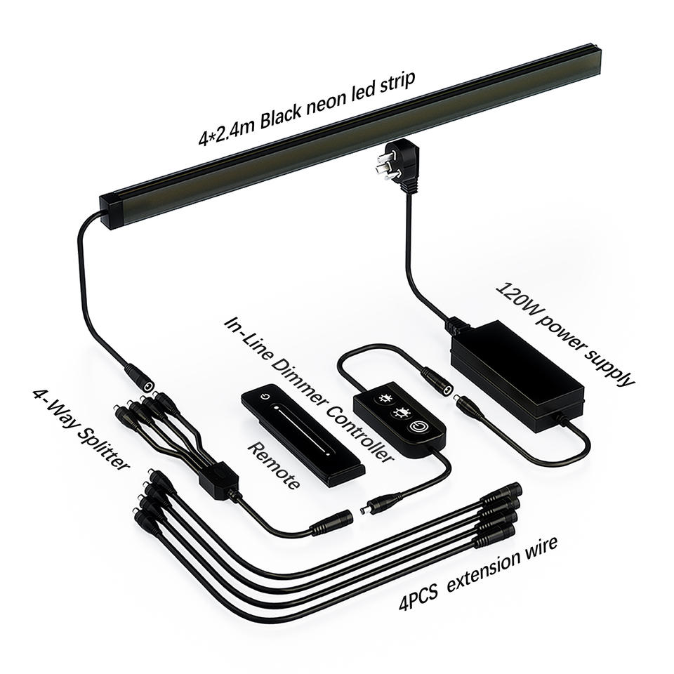 Kit de Iluminación LED para Pared de Listones, Regulable, 4x2.4M, Negro Mate, Neon Flex 24V con Control Remoto RF para Decoración de Interiores