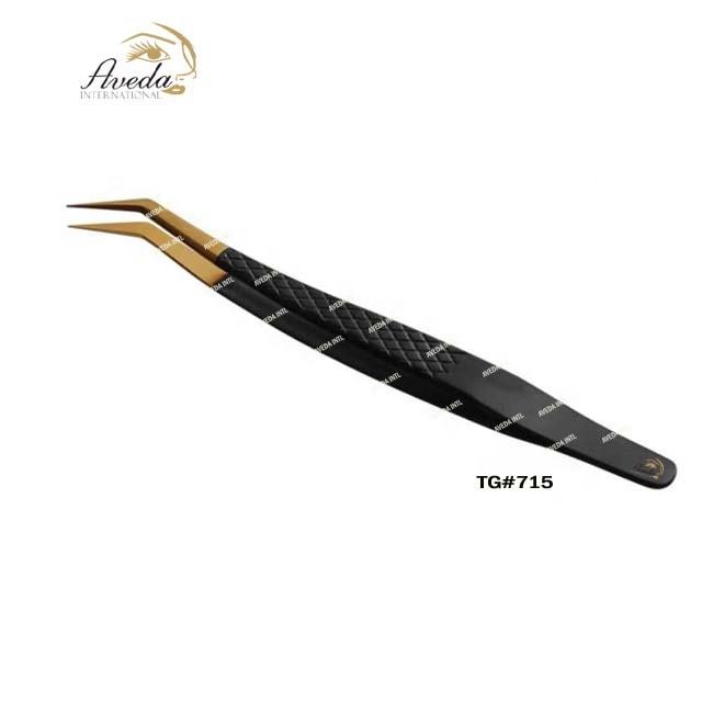 Pinzas para pestañas, calidad perfecta, Punta dorada, recubrimiento en polvo, Color negro, 45 grados, en forma de S, logotipo personalizado
