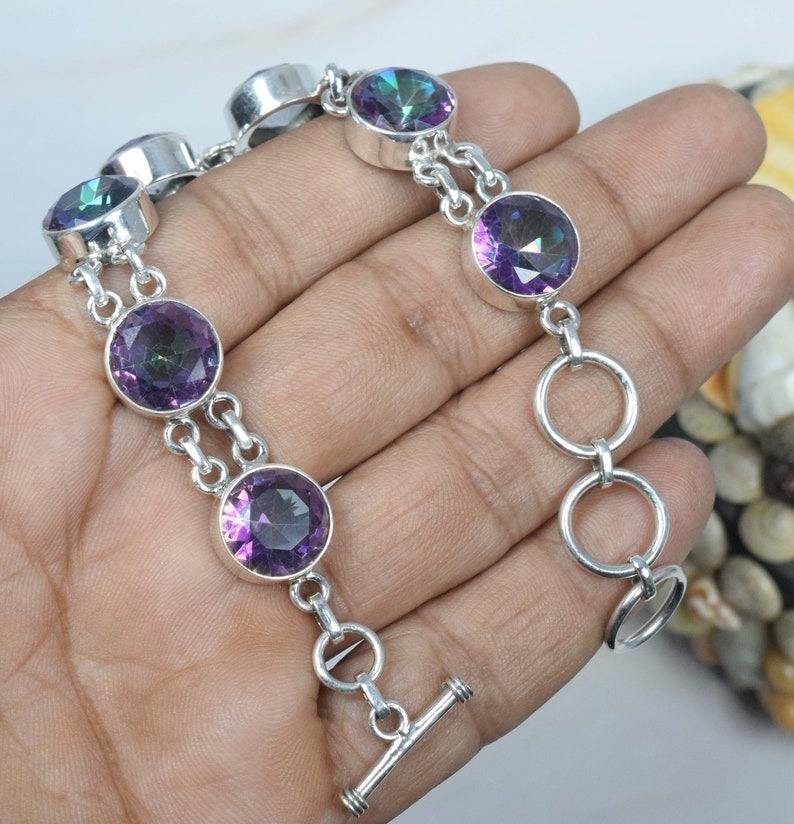 Pulsera de Tenis Perfecta Hecha a Mano en Plata de Ley 925 con Piedra Preciosa de Topacio Místico, Diseño de Cierre, Unisex, Regalo Moderno para Mujer