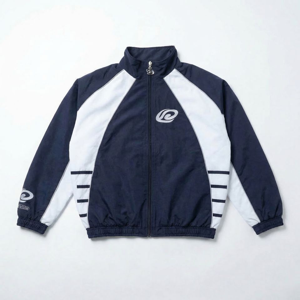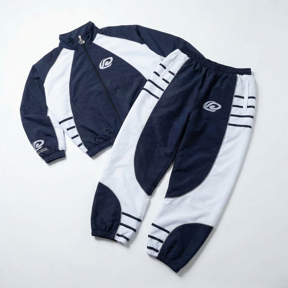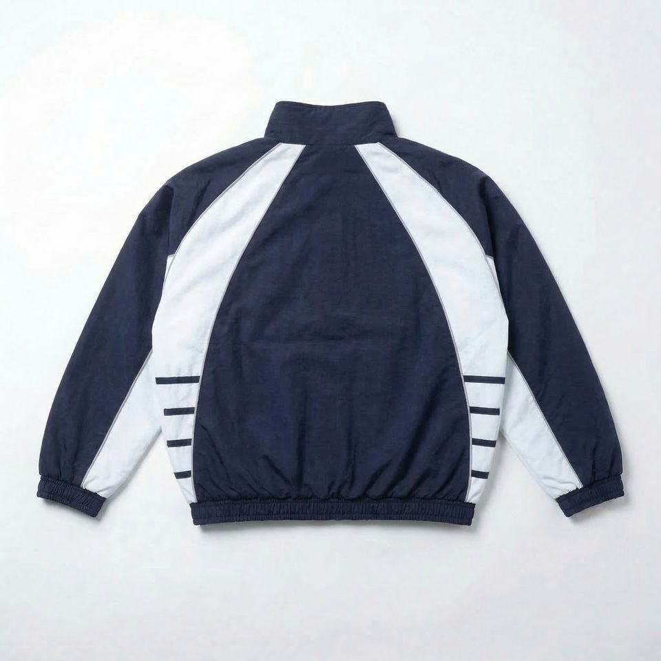 Conjunto Deportivo Azul Marino y Blanco, Chaqueta Cortavientos Reflectante para Correr | Fabricante de Ropa Deportiva de Alto Rendimiento OEM