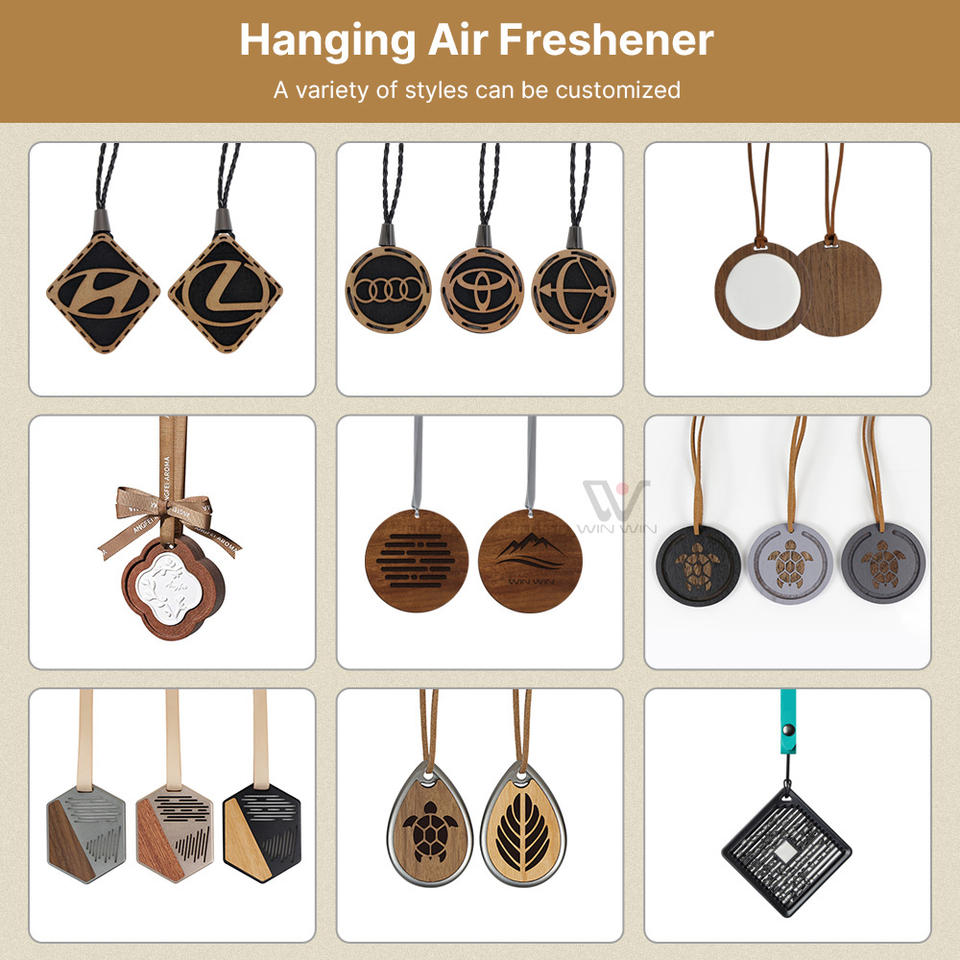 Perfume logotipo personalizado de larga duración coche colgante ambientador Tarjeta de madera para coches logotipo personalizado perfumado ambientador de coche personalizado