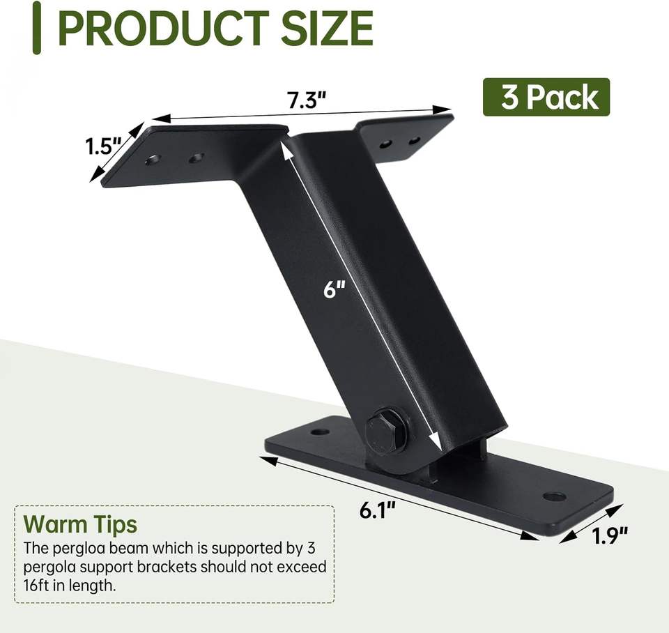 3 soportes de soporte de vigas de pérgola que no excedan los 18 pies de longitud