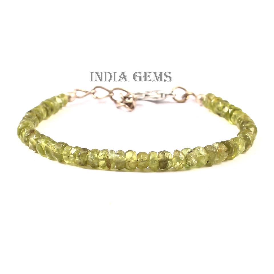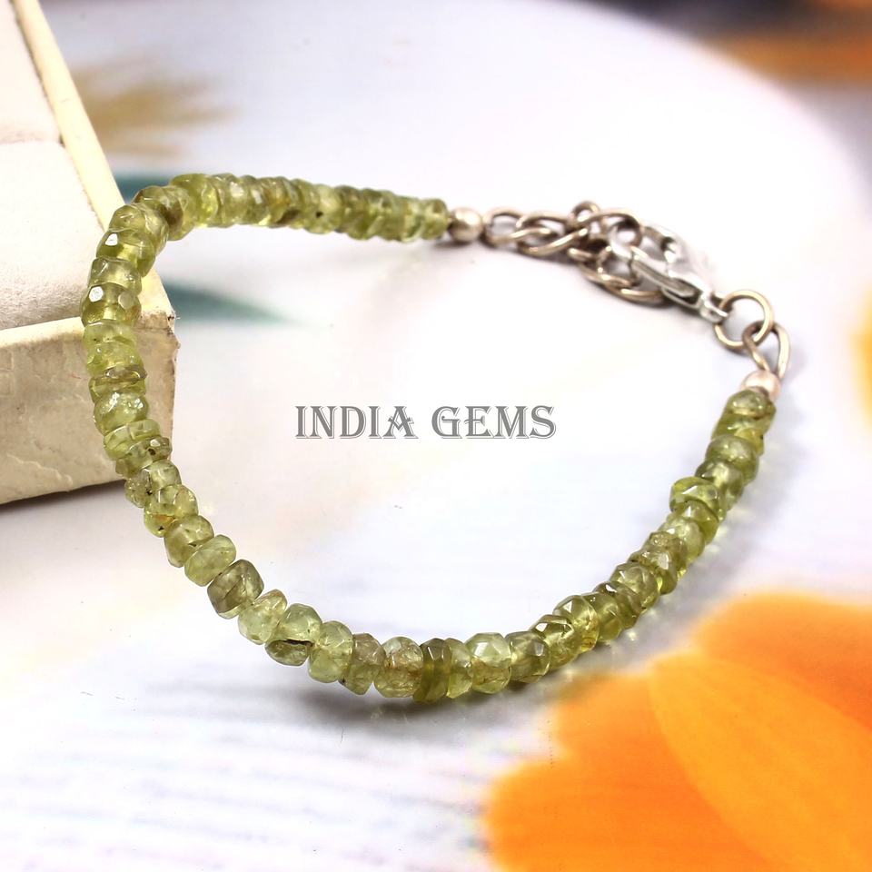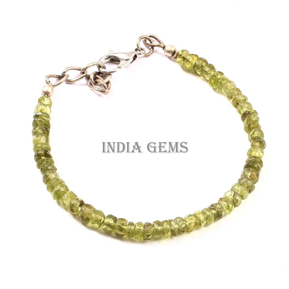 Cuentas de Rondelle facetadas de Peridoto, pulsera ajustable facetadas con cuentas, cuentas de peridoto de piedras preciosas, joyería de plata, pulsera de peridoto