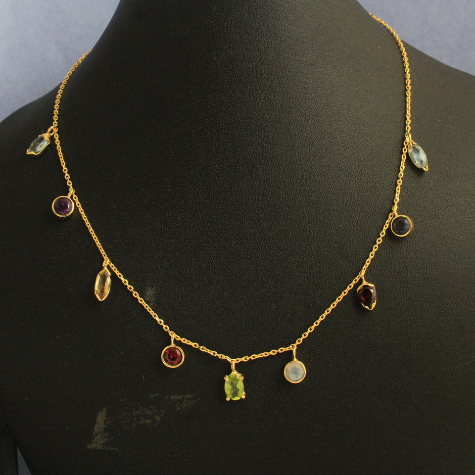 Peridoto Granate Piedra lunar Citrino Amatista Iolita Topacio azul Collar chapado en oro amarillo Plata de Ley 925
