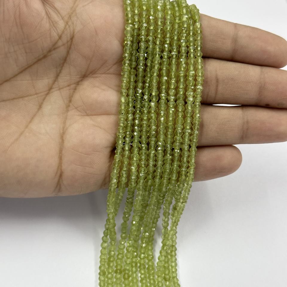 Cuentas de piedras preciosas de peridoto Natural de 3mm, hebras de cuentas sueltas de Rondelle microfacetadas para collar, joyería de piedra semipreciosa Irregular