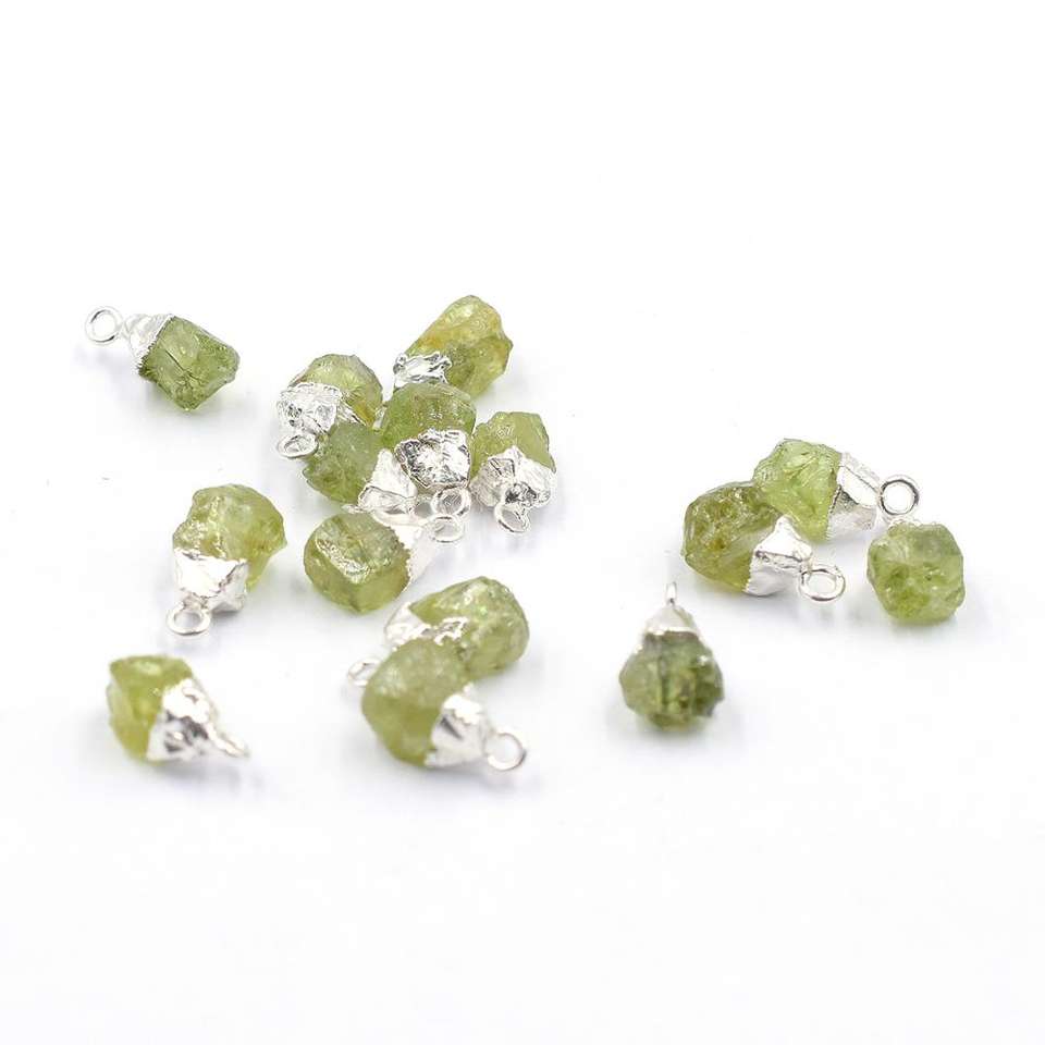 Colgante de Plata con Forma de Peridoto en Bruto con Argolla para la Fabricación de Joyas