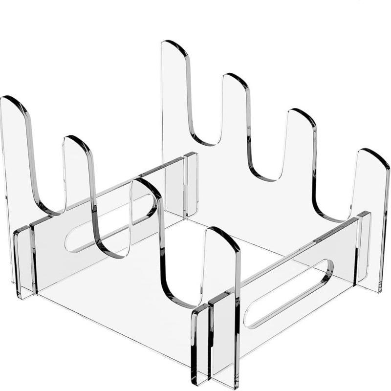 Escurridor de platos acrílico transparente, redondo y moderno, para almacenamiento de vajilla en la cocina.