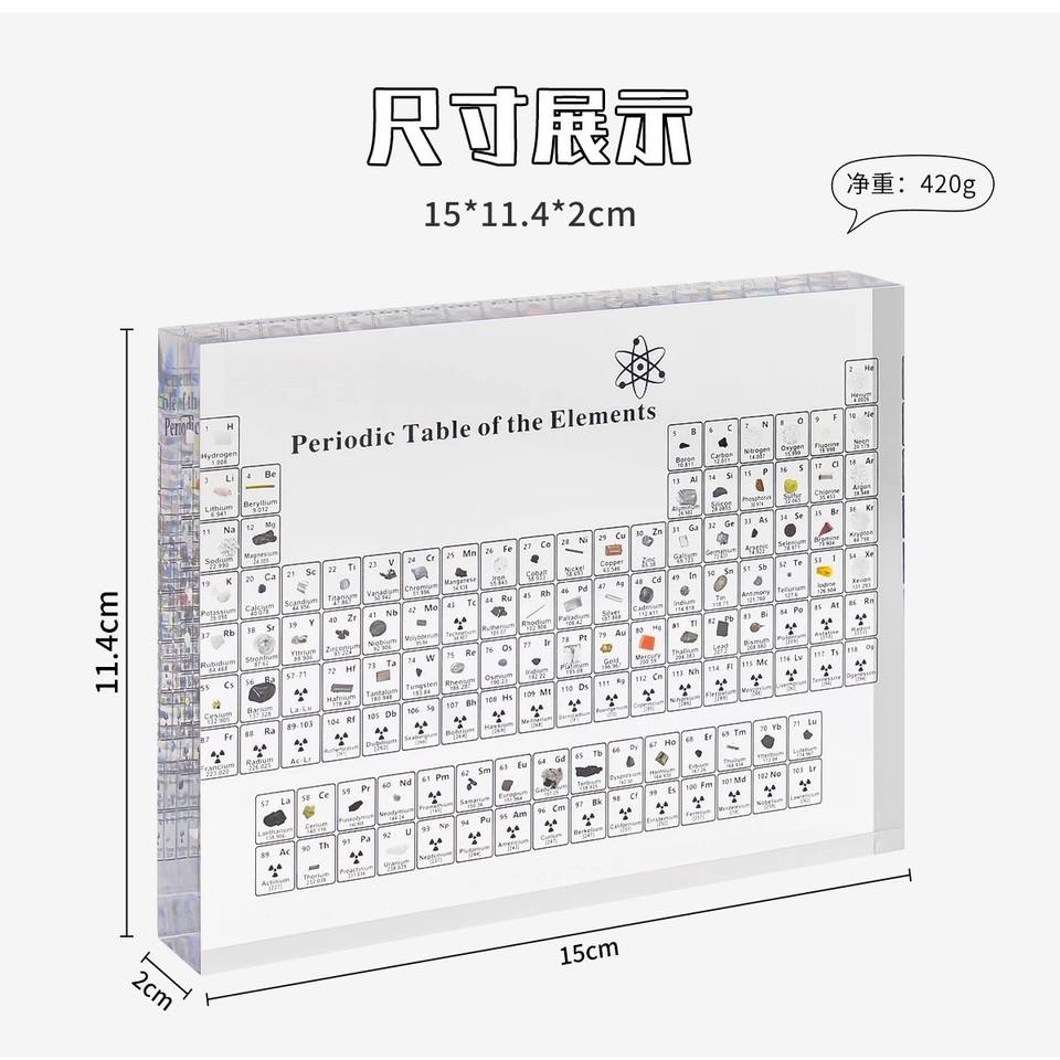 Figuras acrílicas de los elementos de la tabla periódica, especímenes minerales, decoración de escritorio para experimentos de química, decoración del hogar