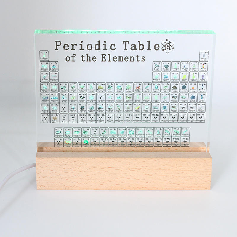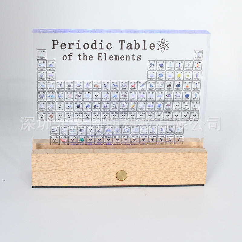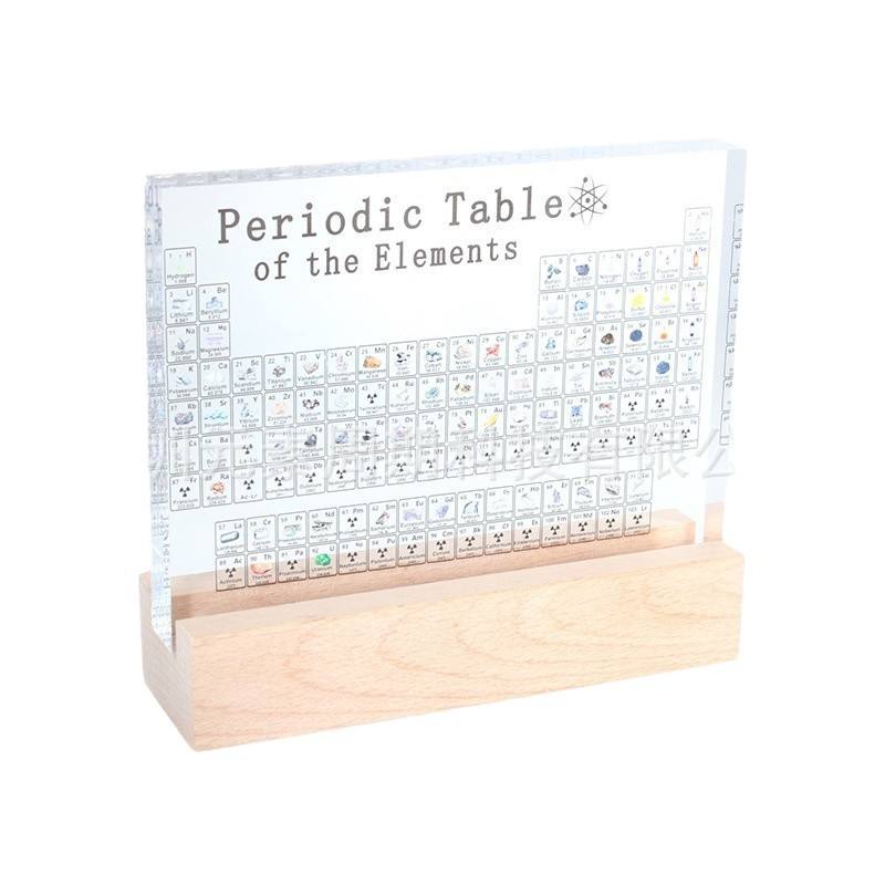 Modelo de tabla periódica con base de madera ligera para educación química y decoración de escritorio