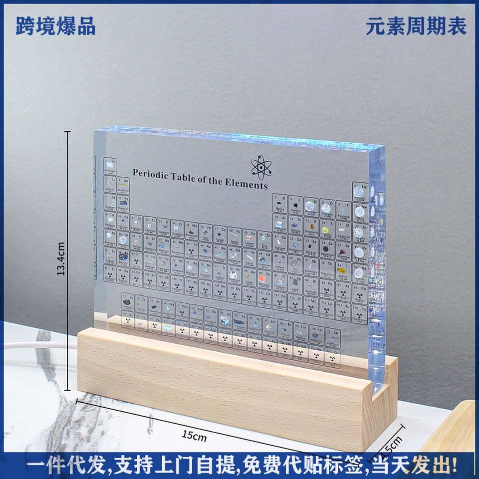 Tabla periódica de los elementos, exhibición de acrílico con muestras integradas, decoración educativa para escritorio, para química escolar