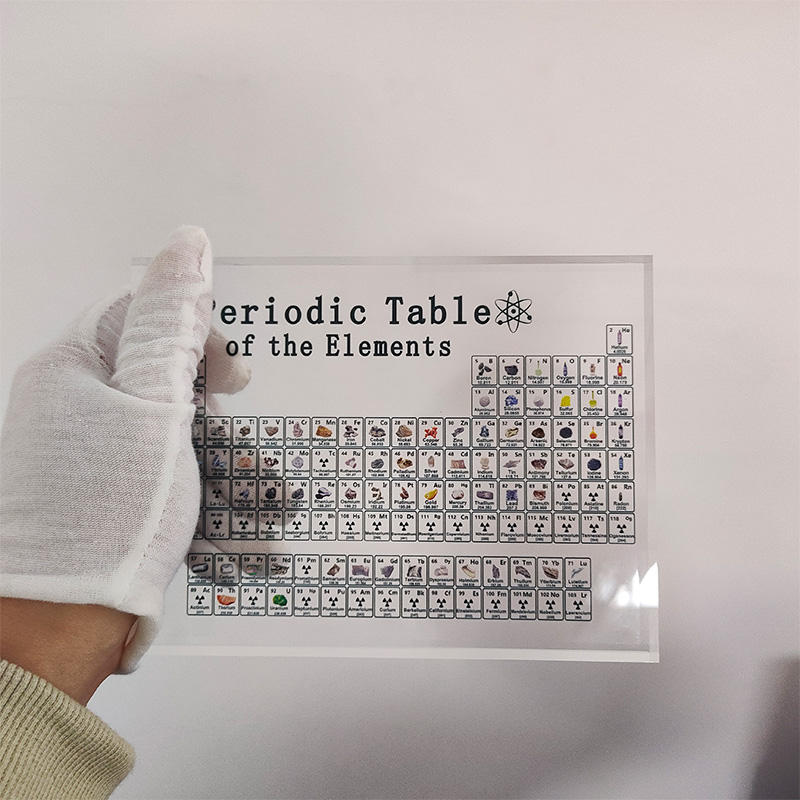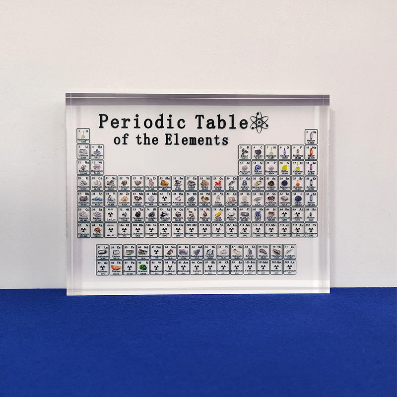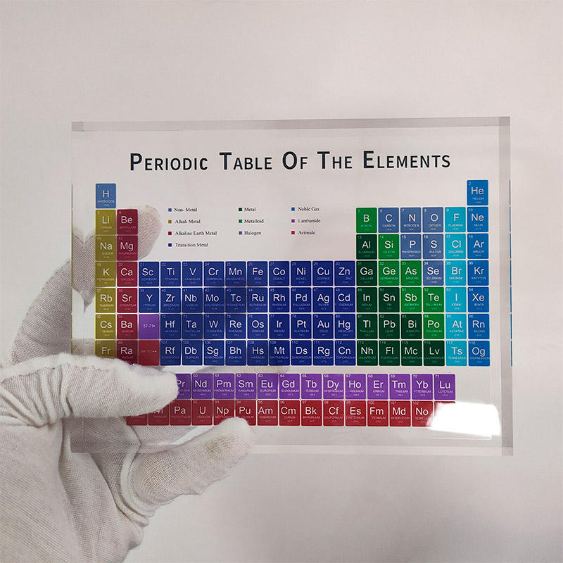 Tabla periódica de elementos, bloque acrílico, visualización de tabla periódica con superficie, impresión UV, gráfico periódico químico