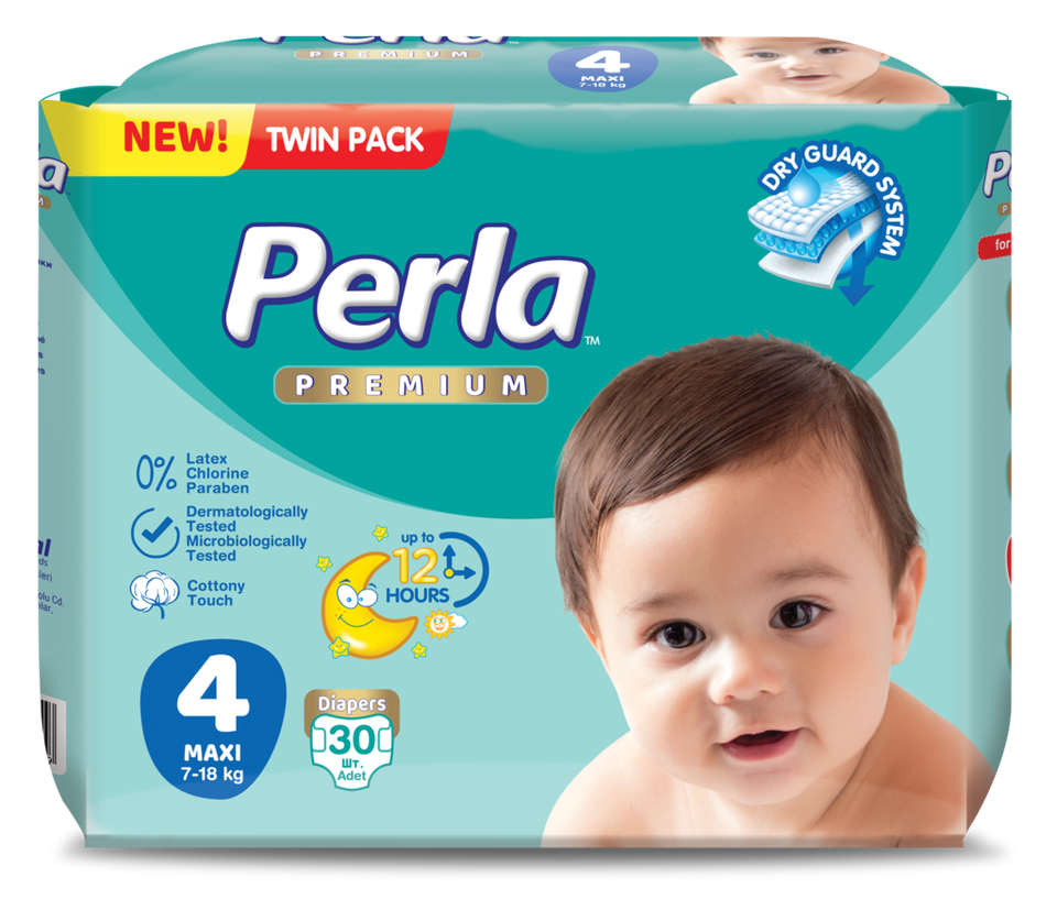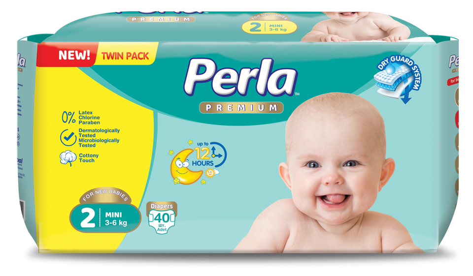 Pañales Desechables Perla Modelo No.3 Hechos en Turquía, Pulpa de Celulosa, Superficie Seca, Absorción, Protección Contra Fugas, SAP Japonés, 4 Capas, Bebés de 27-35 Libras