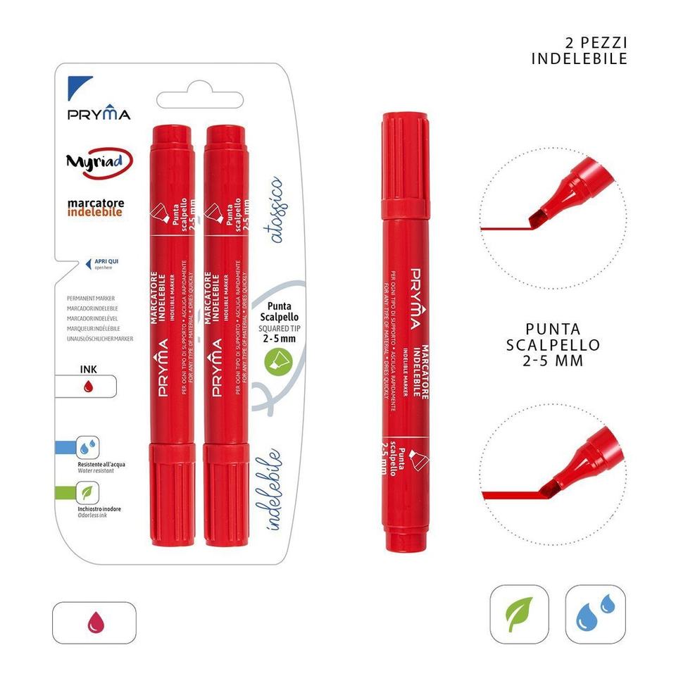 Punta de cincel marcador permanente 2-5mm Paquete de 2 suministros de escritura rojos