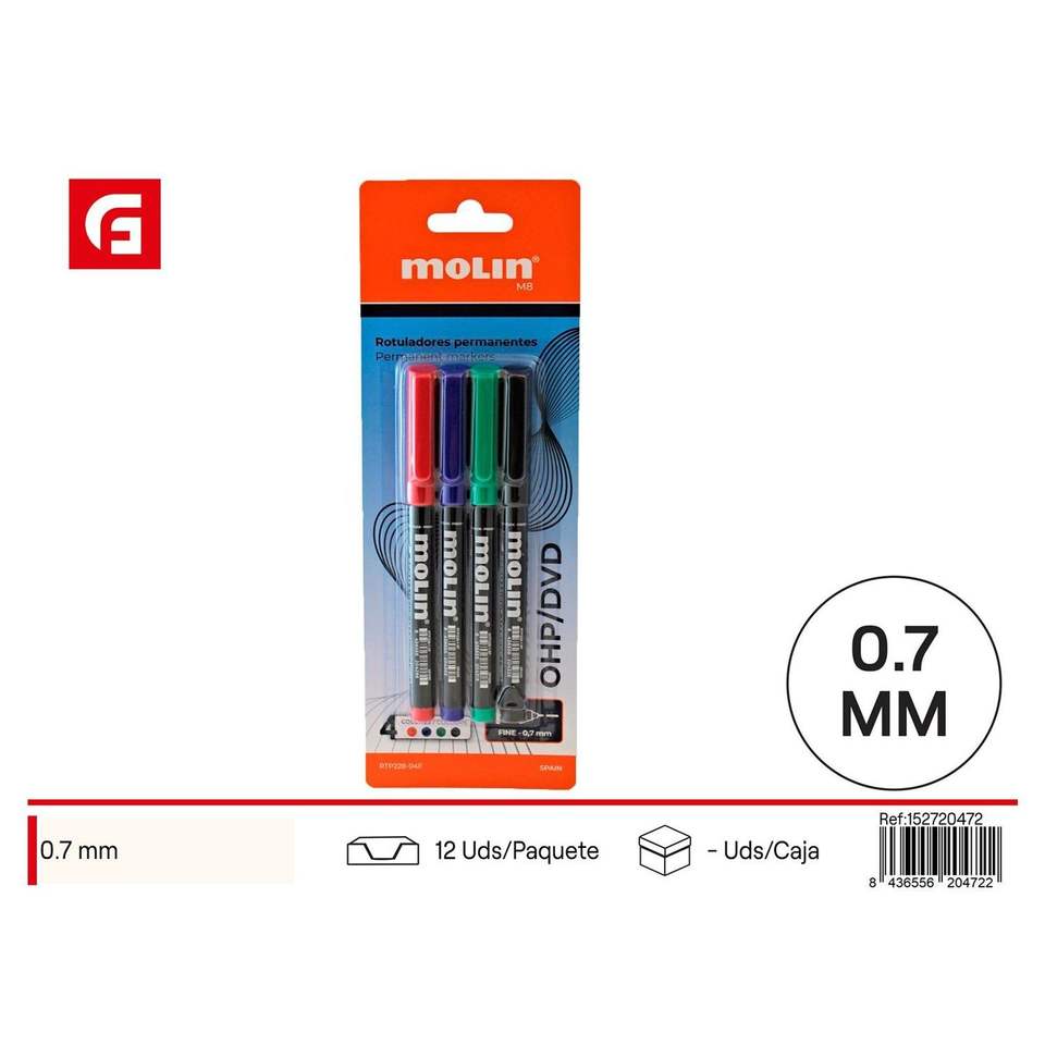 Rotuladores de material escolar OHP 0,7 surtidos con etiqueta permanente, 4 unidades