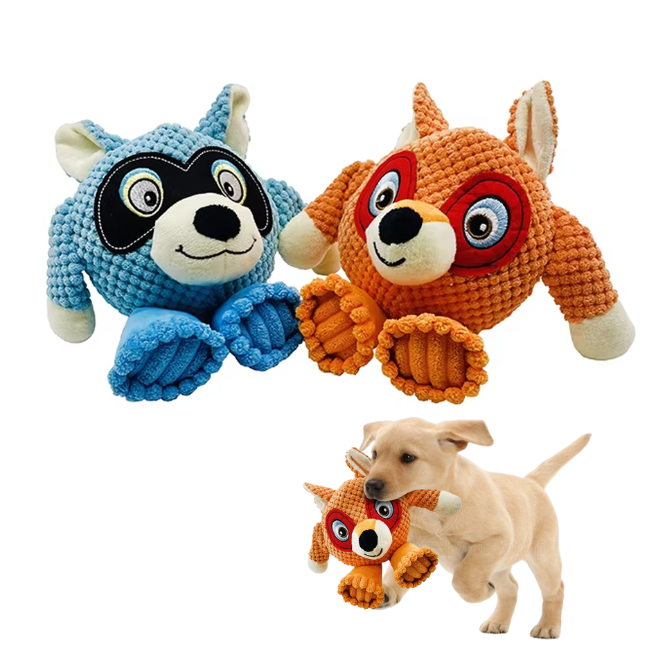 Perro mapache de peluche suave interactivo juguete para masticar para mascotas nuevo diseno