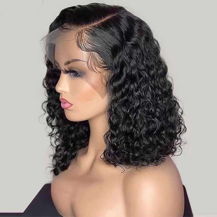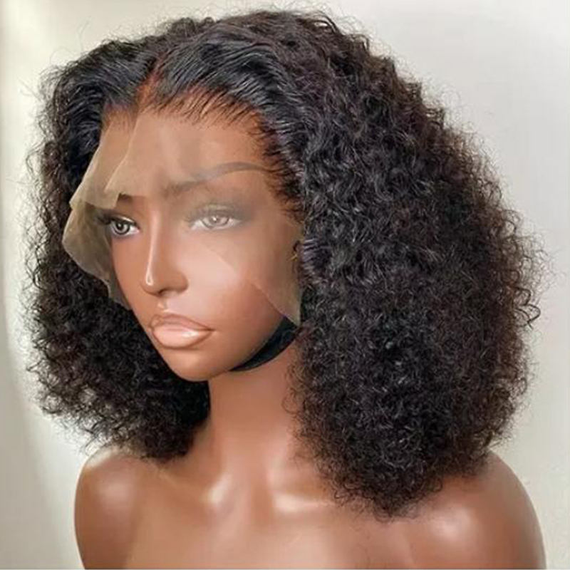 Pelucas de Cabello Humano con Corte Pixie Bob, Peluca Frontal de Encaje 13x4 Afro Rizado, Peluca Frontal de Encaje 12A sin Pegamento, Peluca Bob Corta con Ondas de Agua