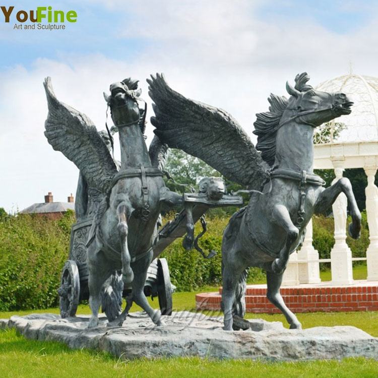 Chariot con la cabeza de la escultura de Medusa en venta Caballo volador de bronce