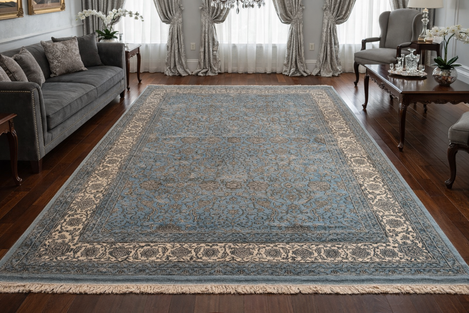 Alfombra de Lana Anudada a Mano con Diseño Persa, Alfombra Clásica con Estampado Floral Completo
