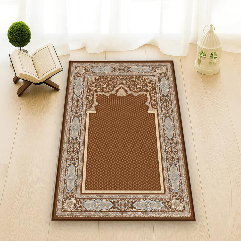 Alfombra de Oración Persa Rectangular con Patrón Geométrico, Pelo Plano, Espuma de Alta Densidad de 17 mm de Grosor, Base de Goma Antideslizante, Poliéster
