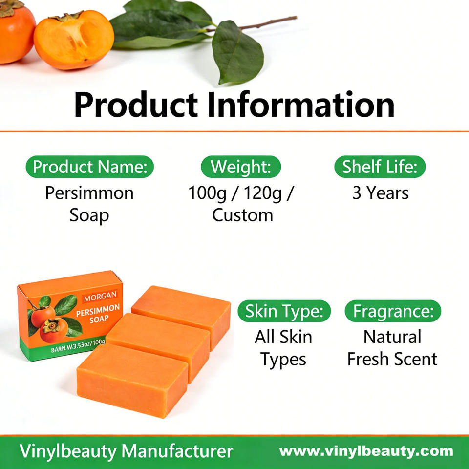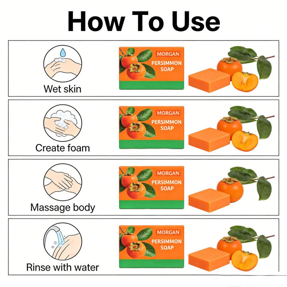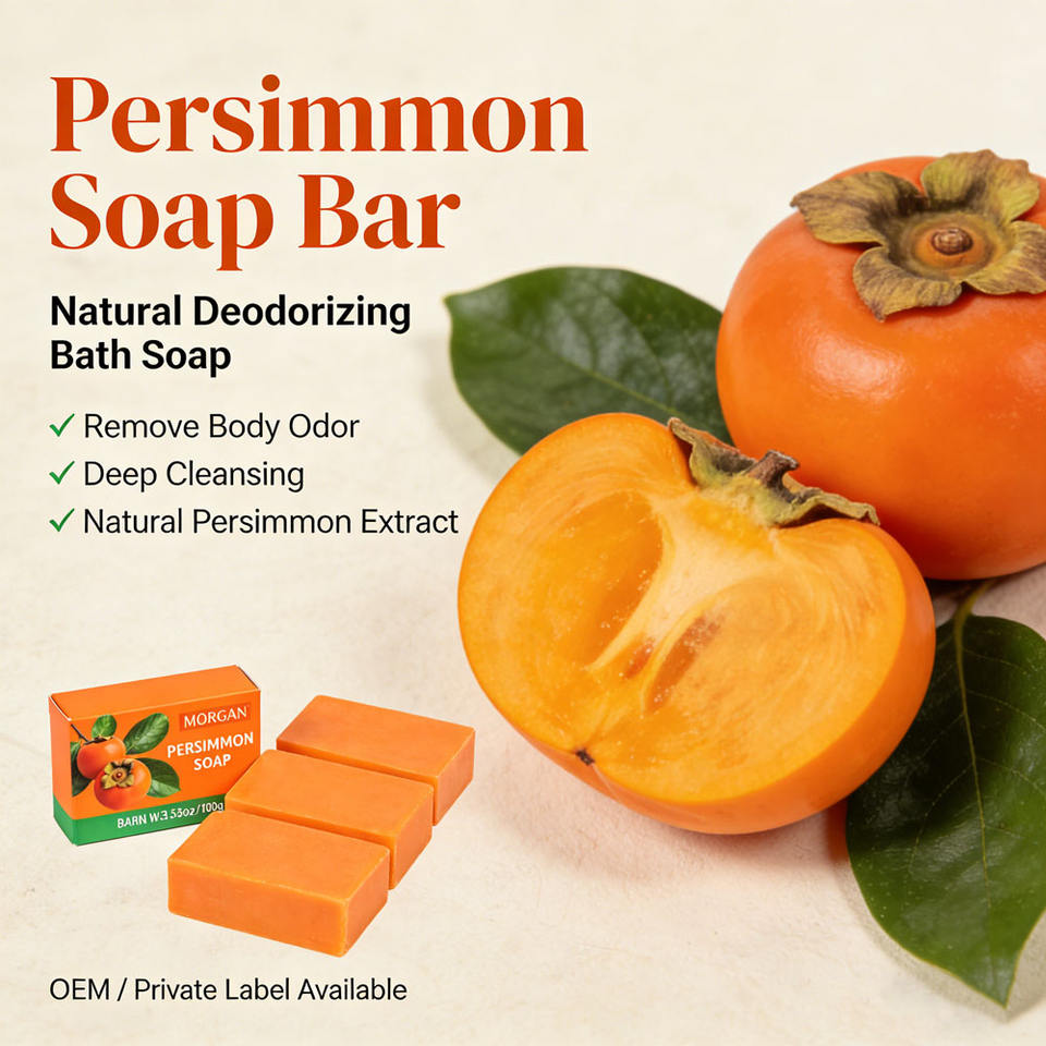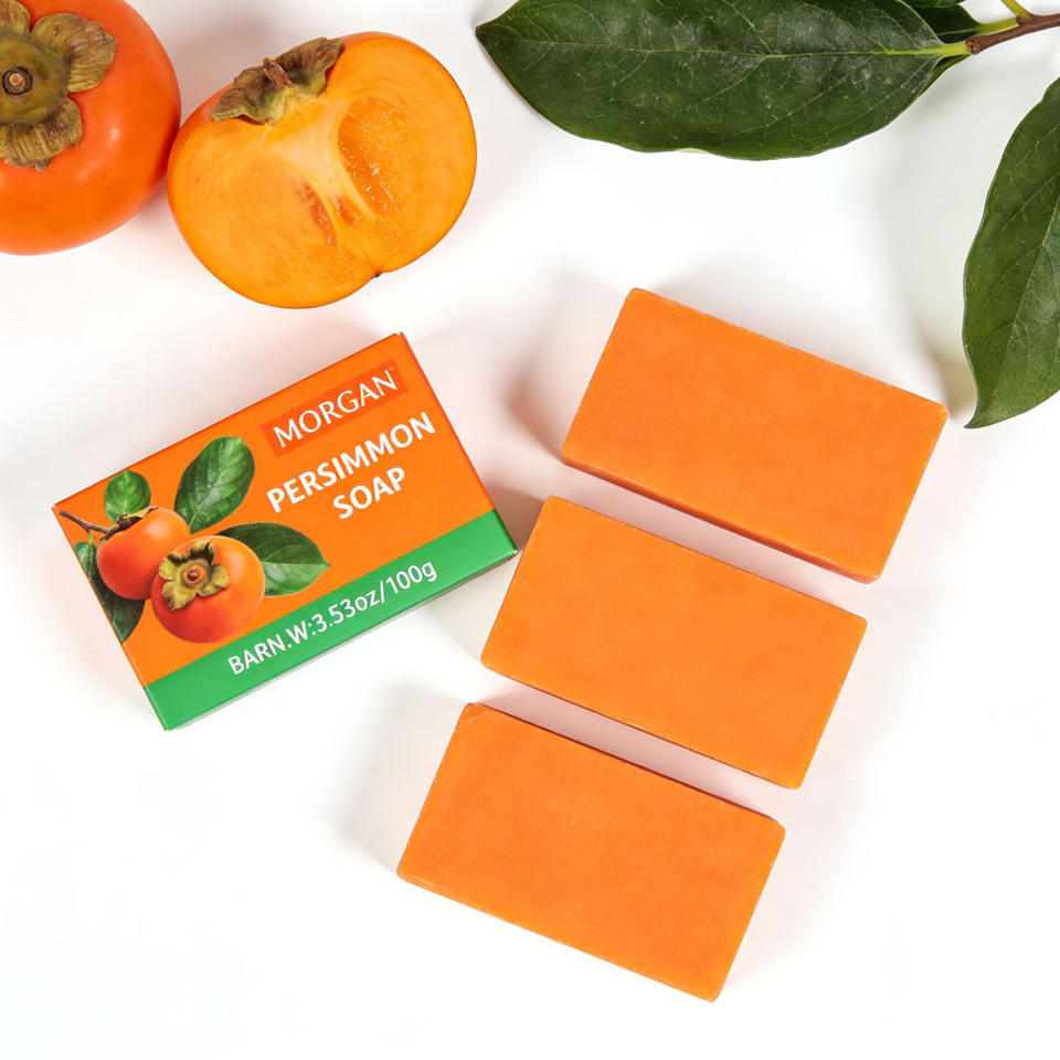 Jabón de Caqui Orgánico Natural con Vitamina E, Jabón Desodorante y Exfoliante Profundo para el Cuerpo