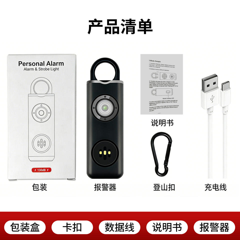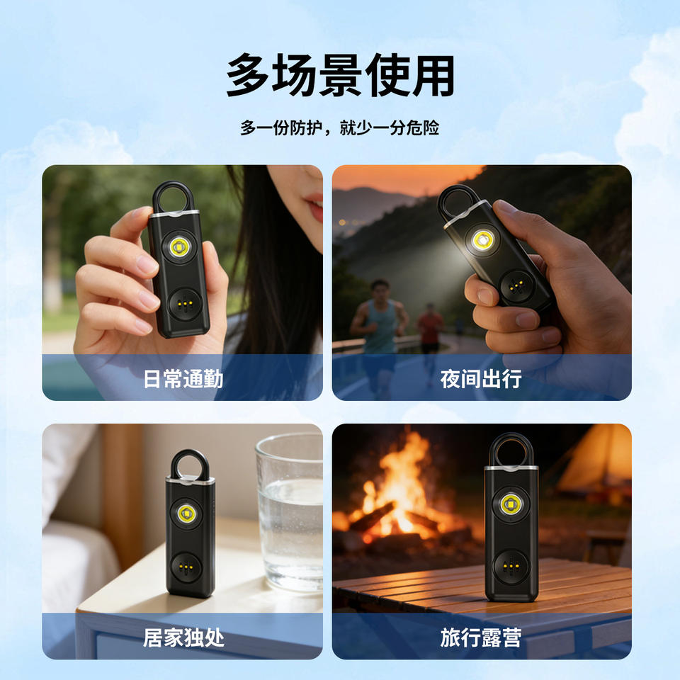Dispositivo de alarma personal recargable y portátil con luz para mujeres, protección personal para exteriores, antilobos.