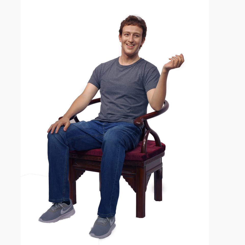 Escultura de Silicona de Tamaño Real Hiperrealista Tallada a Mano de un Famoso Emprendedor en Pose Sentada para Decoración de Interiores