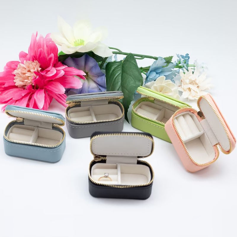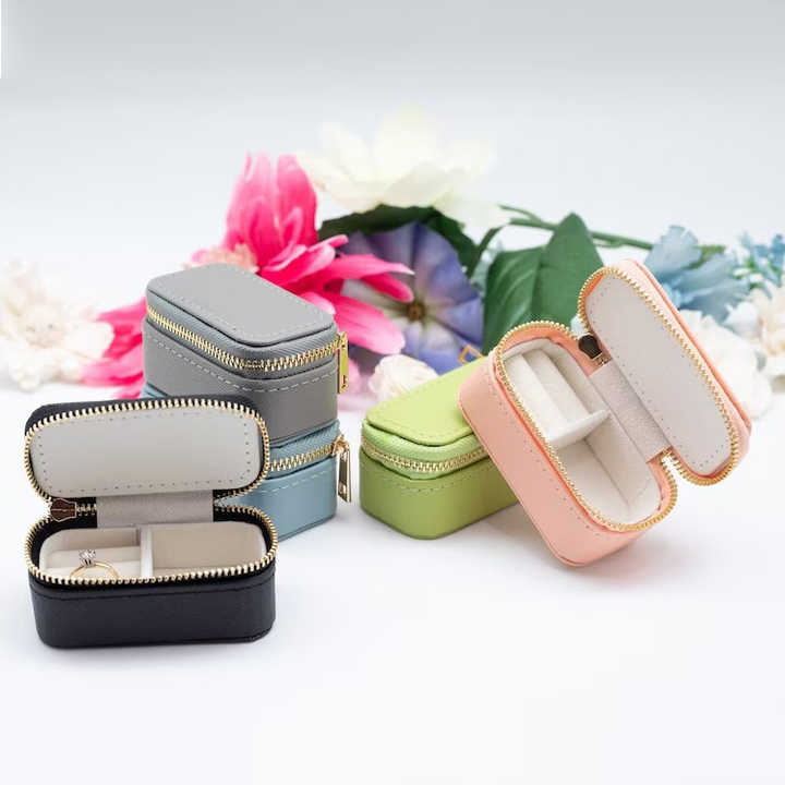 Caja de Joyería de Cuero Mini Portátil con Cremallera para Viaje, Personalizable con Logotipo, para Almacenamiento de Pendientes y Joyas, Popular, Gran Venta