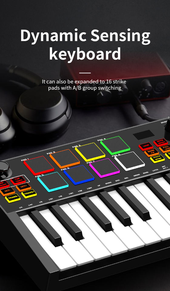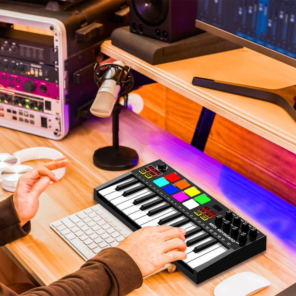 Estudio personal MD03 Transceptor de audio piano 25 teclas Función de instrumentos de música de computadora 8 almohadillas Teclado MIDI de buena calidad