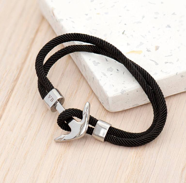 Pulsera de ancla Náutica de cuerda negra personalizada, regalos