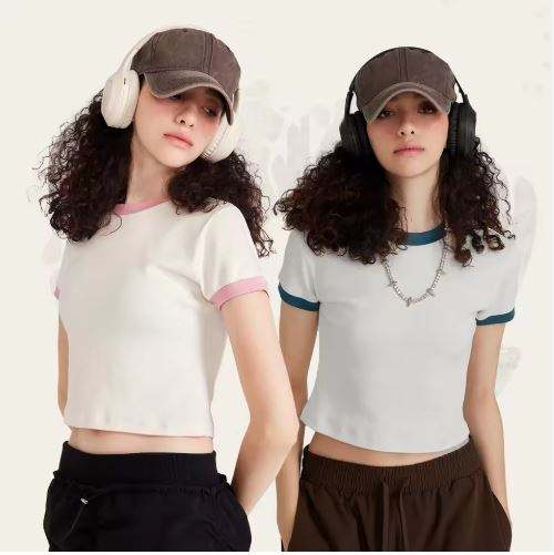 Top corto personalizado, camiseta para mujer, camisetas recortadas de manga corta, ropa de calle informal ajustada básica, camisetas acanaladas