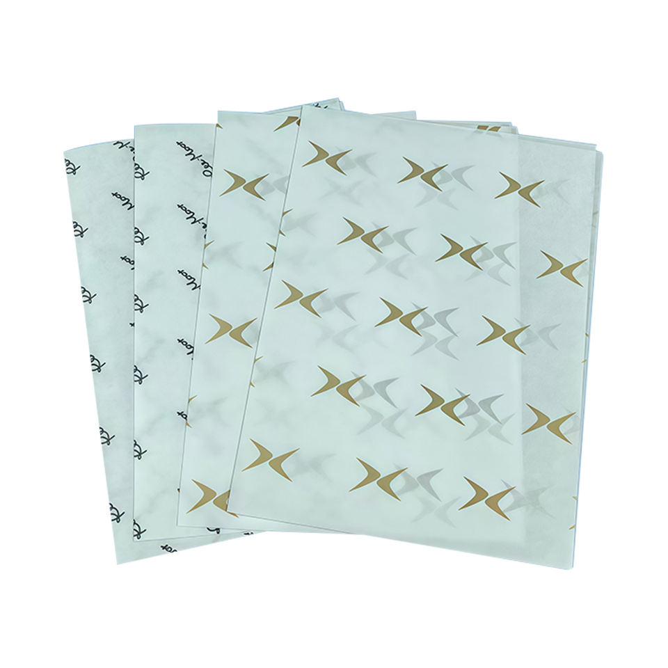 Papel de Regalo Personalizado con Logotipo Plateado Impreso y Acabado Barnizado