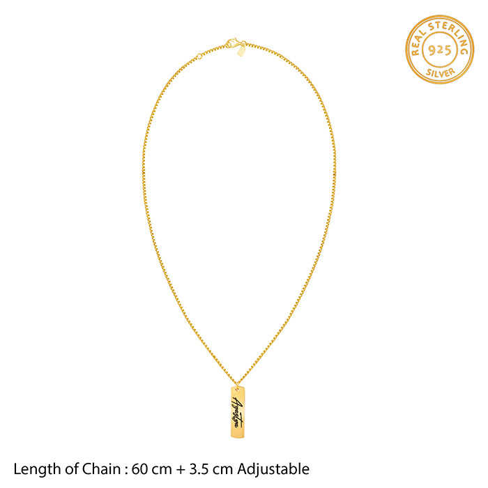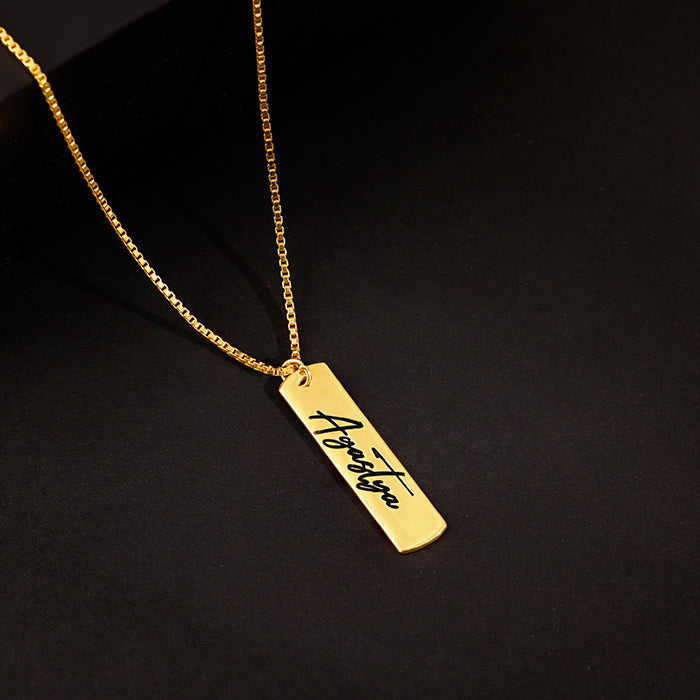 Collar con colgante fino con nombre de barra vertical dorada personalizada