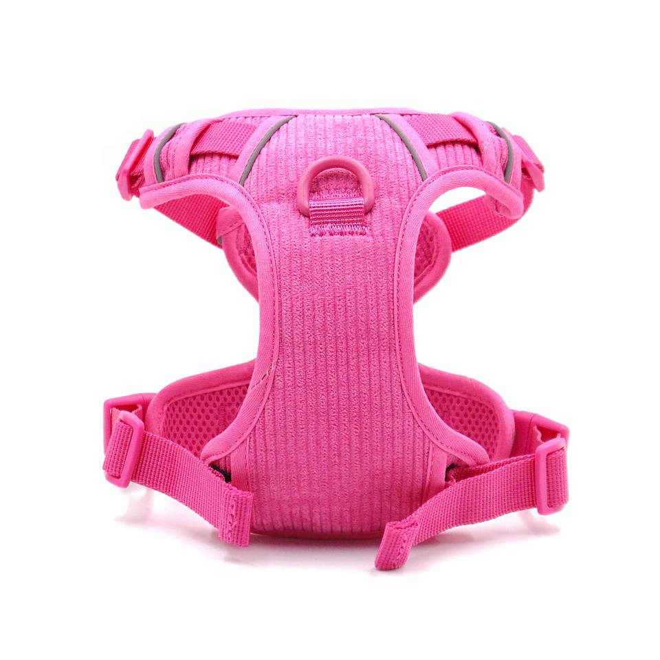 Conjunto de Collar Acolchado Personalizado de Nailon Sólido Rosa Intenso, Arnés Antitirones, Correa para Perro, Dispensador de Bolsas para Excrementos, Bolsa para Premios con Remaches - Combinación Diferente
