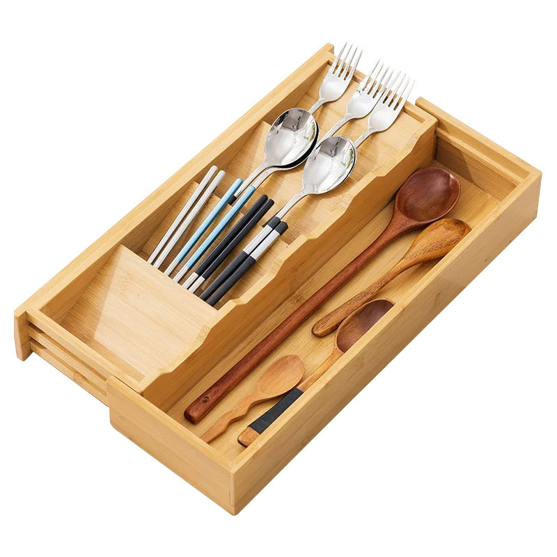 Cubiertos de cocina de madera telescópicos personalizados, vajilla, armario extraíble y cajón deslizante, caja de cubiertos, organizador de bandeja