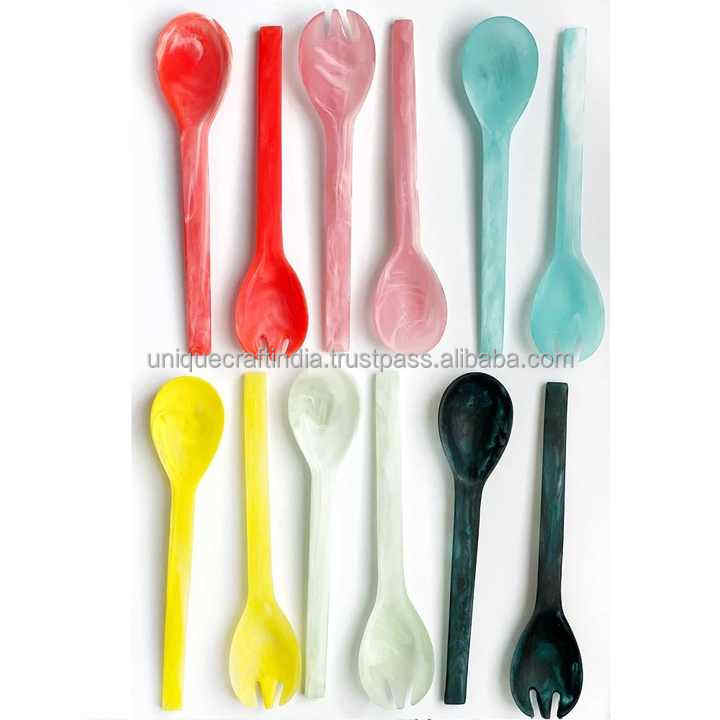 Utensilios de cocina UCI personalizados, juego de servidor de ensalada Allure con patrón de remolino de resina, vajilla para fiesta de boda, cucharas para servir al por mayor
