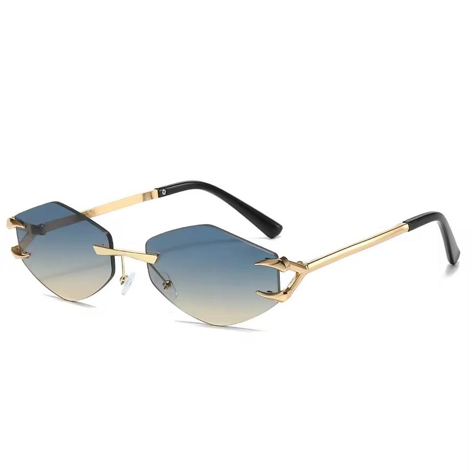 Gafas de Sol de Metal sin Montura con Diamantes, Estilo Punk, Transparentes, UV400, Nuevas Gafas de Lujo para Hombre