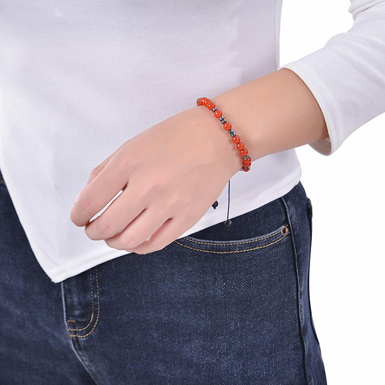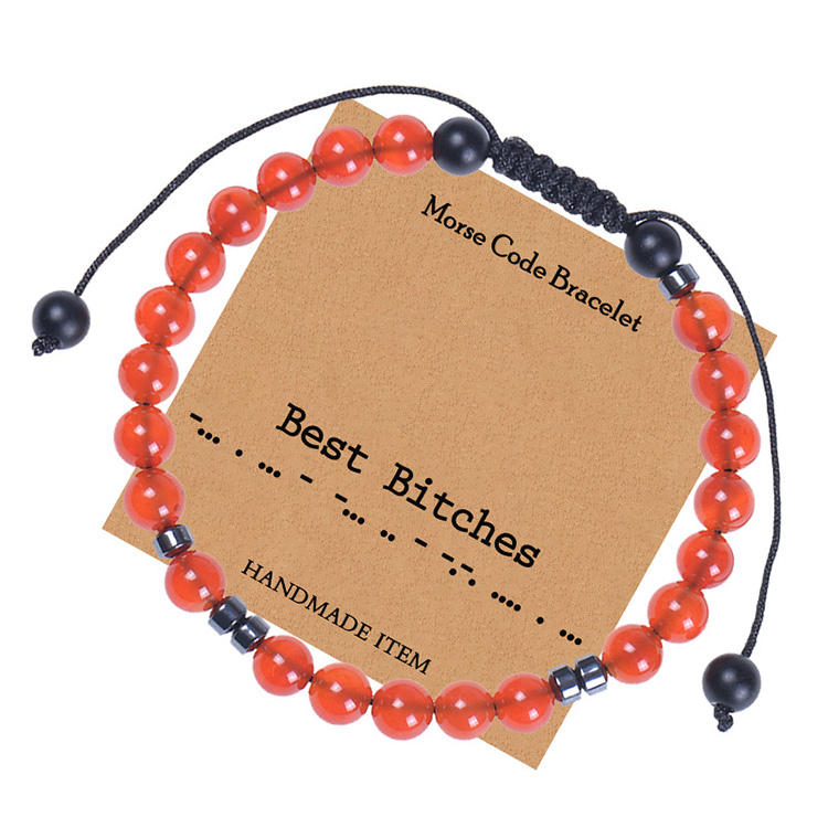 Pulsera de código Morse con personalidad, pulsera de cuentas de piedra de cristal de ónix rojo, pulsera de Amistad inspiradora tejida, regalos para mujeres