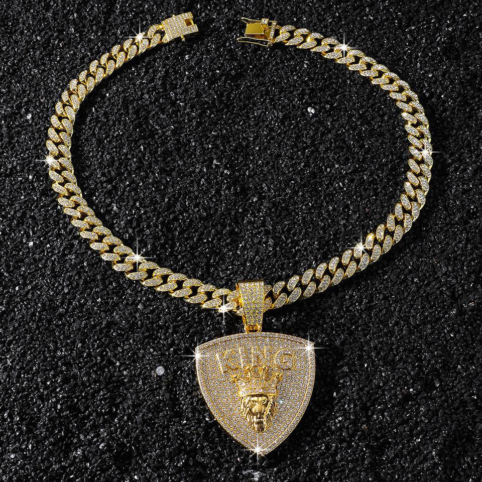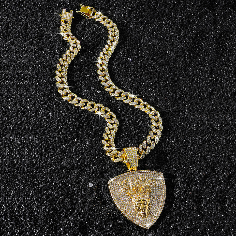 Collar con Colgante de Cabeza de León en Aleación Brillante, Diseño Simple y Personalizado, Estilo Hiphop para Hombre, Joyería de Moda al por Mayor