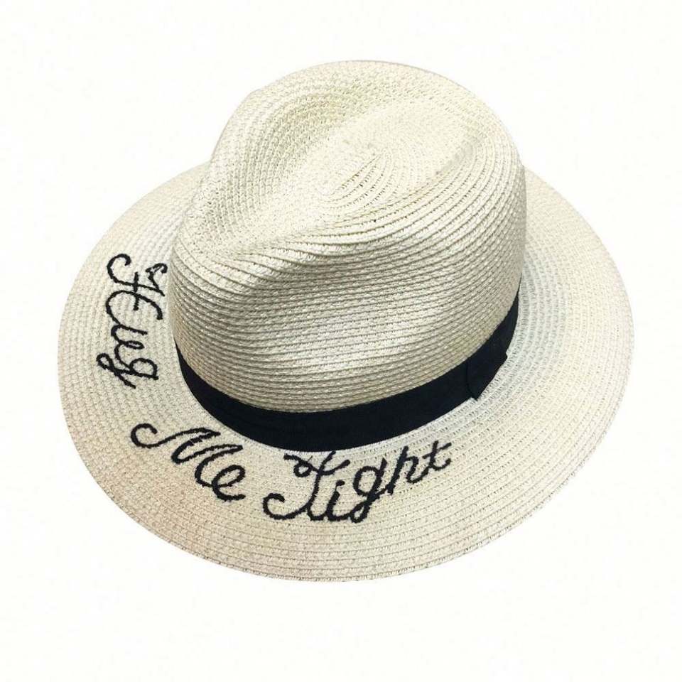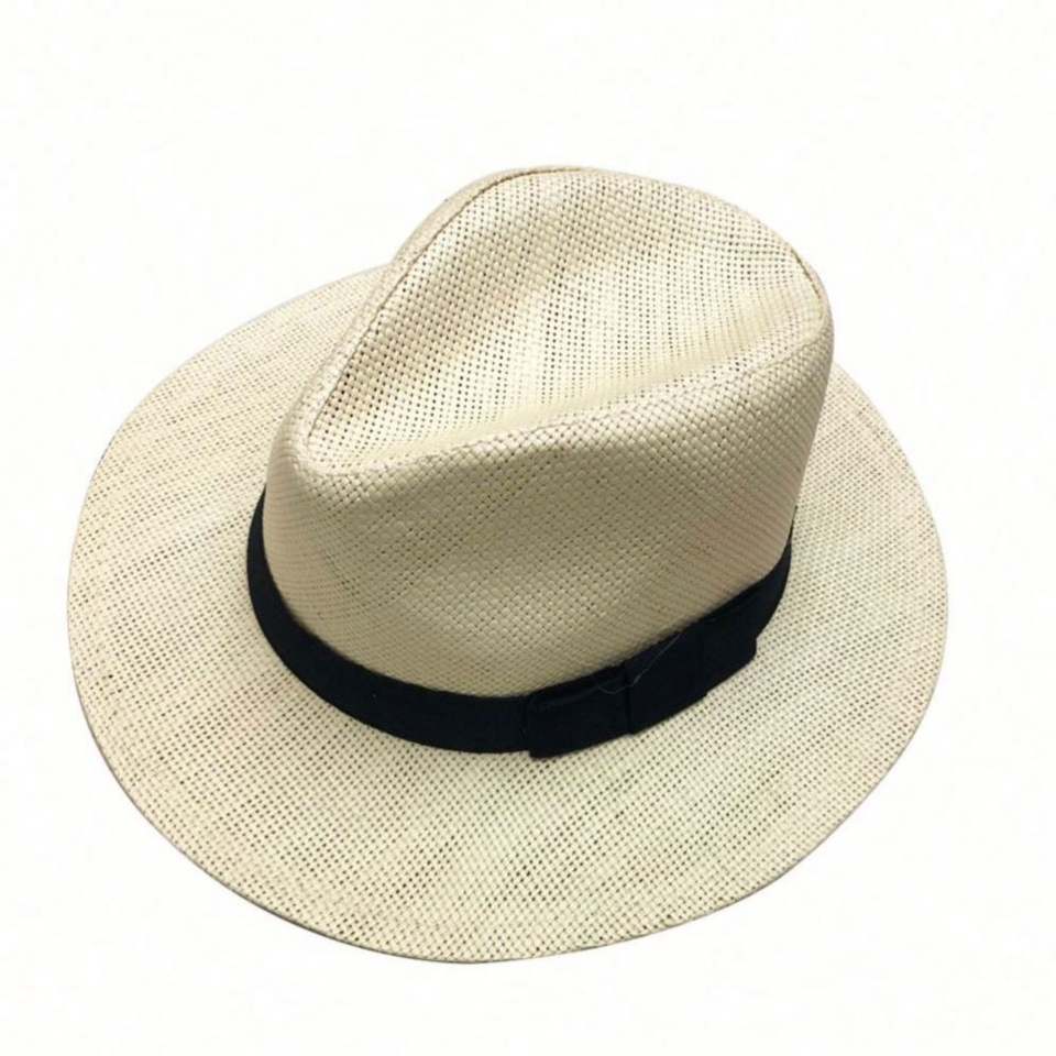 Sombrero Panamá Beige Personalizado para Mujer, con Cinta Negra, Diseño Calado y Transpirable, para Playa