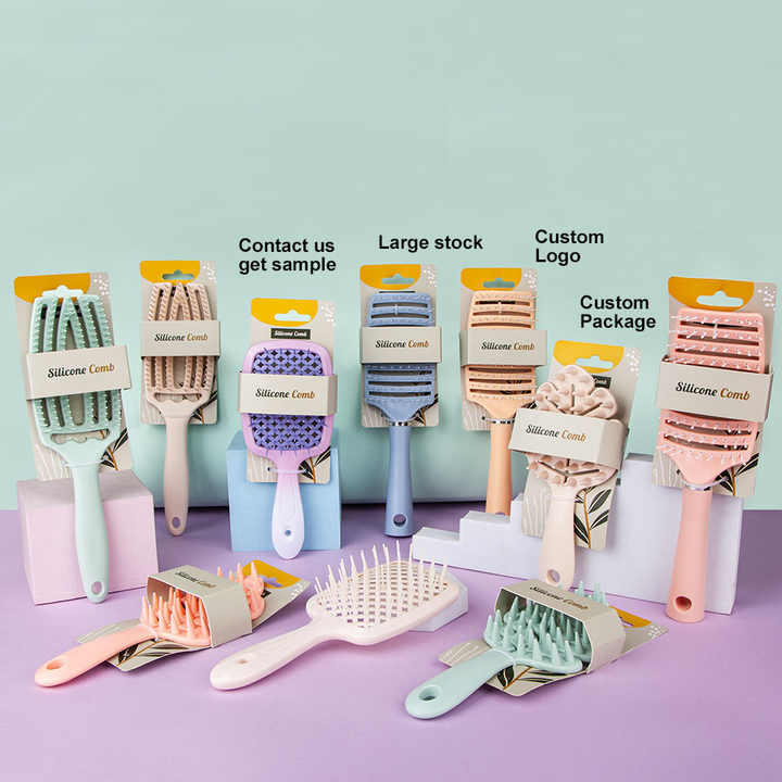 Peine de costilla esponjoso curvo grande personalizado, cepillo para peinar el cabello rizado, desenredador húmedo y seco de salón, herramientas de peluquería para uso doméstico femenino