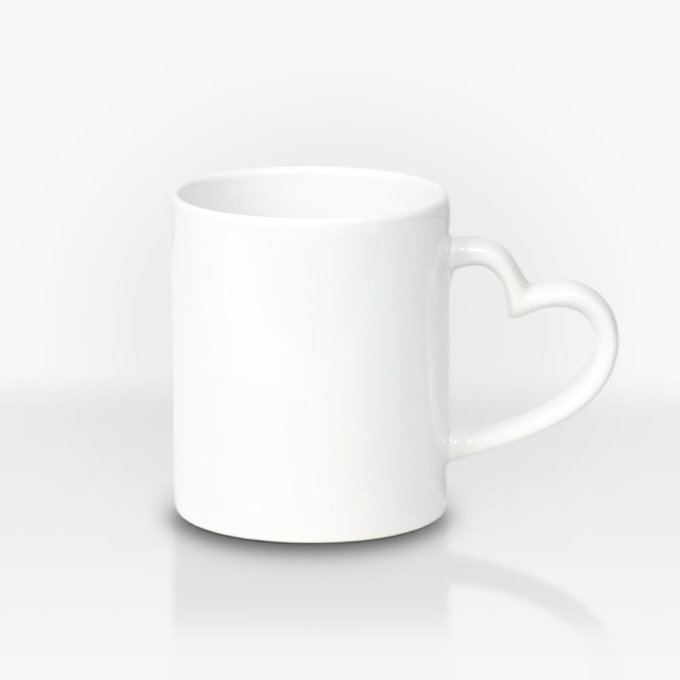 Taza de cerámica personalizada de 11 oz con asa en forma de corazón para sublimación