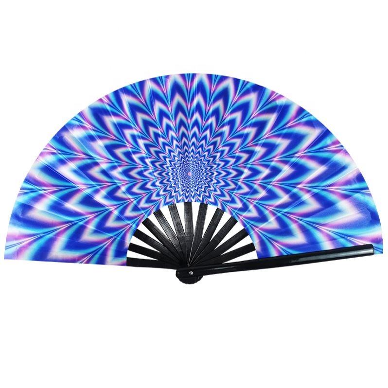 Ventilador de Kungfu personalizado de 13 pulgadas con brillo UV Big Clack Disco, ventilador plegable para Rave