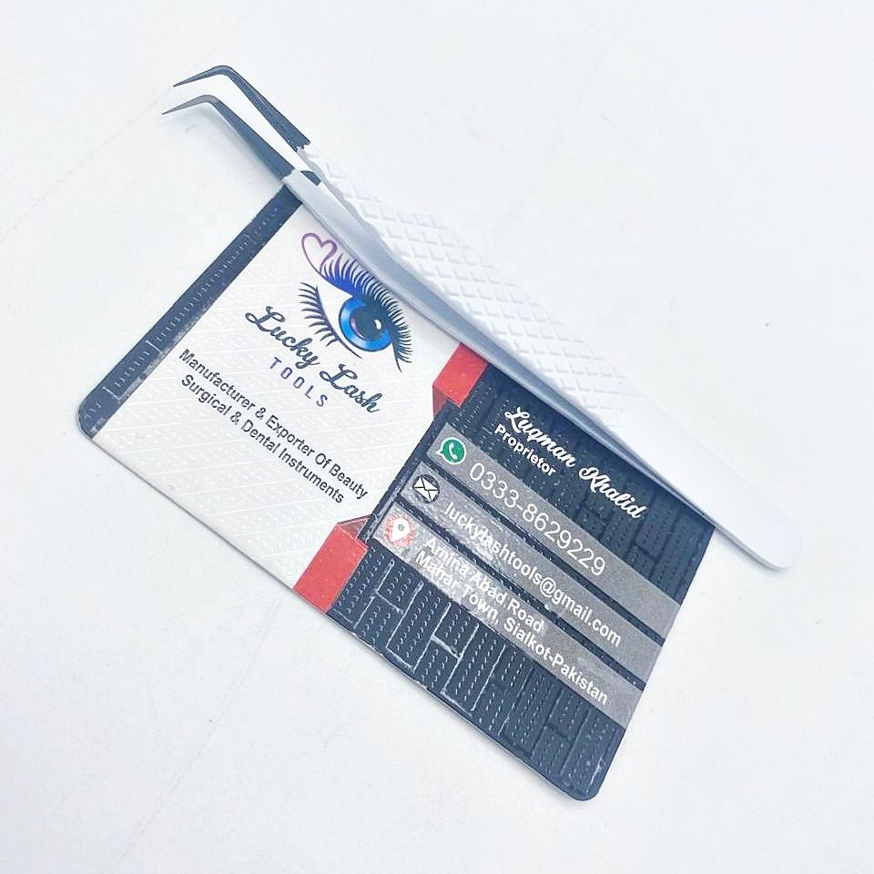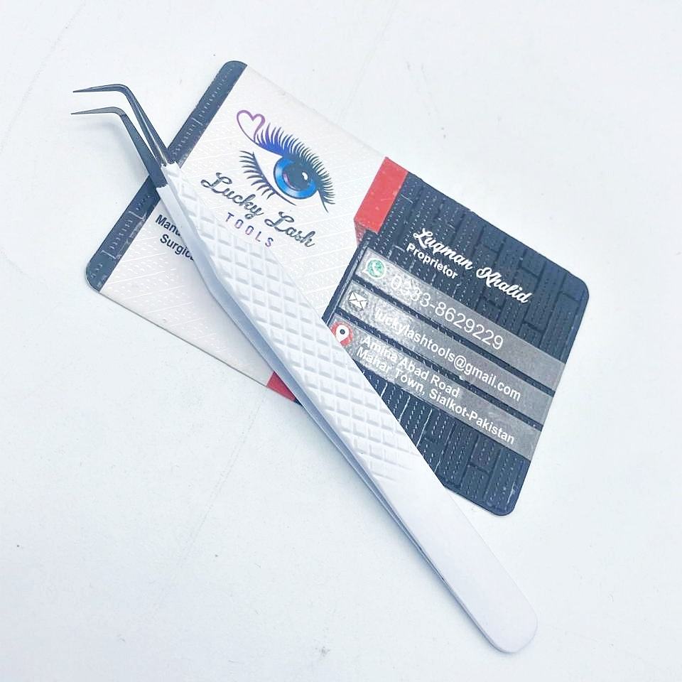 Pinzas de Extensión de Pestañas de Volumen Personalizadas con Punta de Fibra en Forma de 90 Grados, Punta Negra, Marca Privada, Lucky Lash Tools