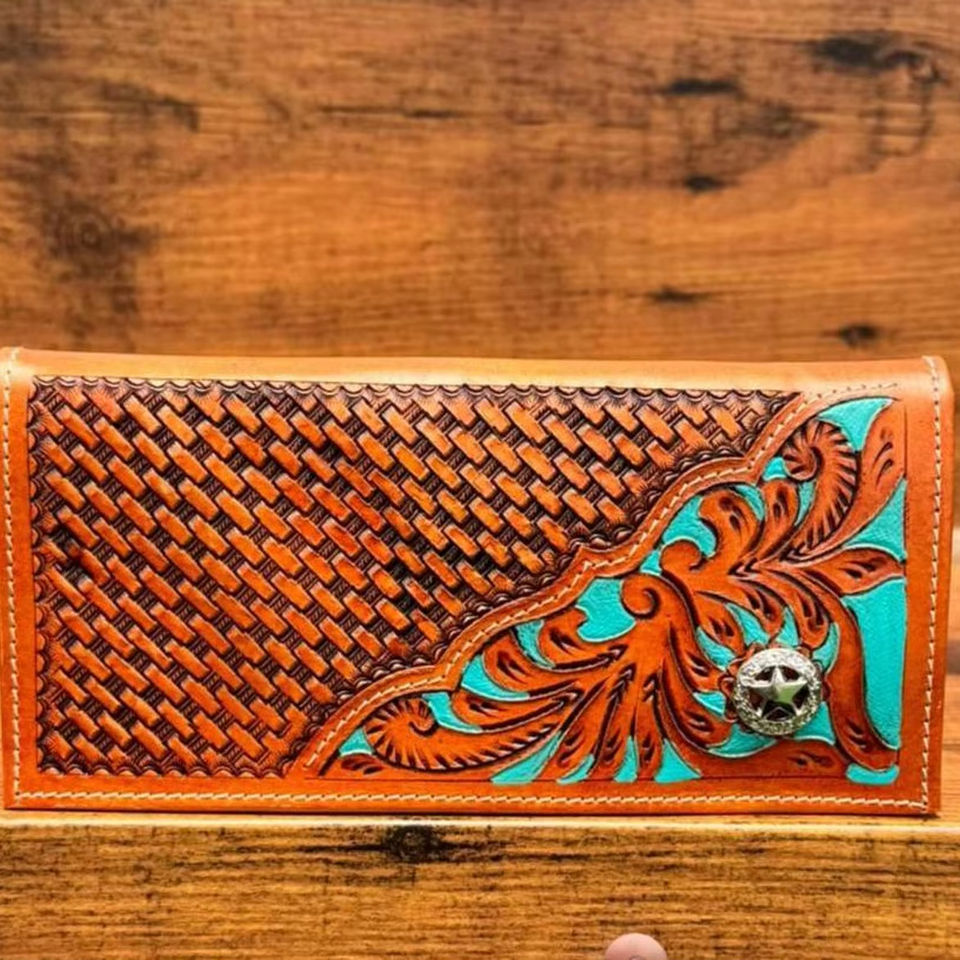 Cartera de Cuero Genuino 100% con Diseño Personalizado de Tejido de Cesta a Rayas, Tallada a Mano, con Cierre de Cremallera Corto, Bloqueo RFID e Impermeable