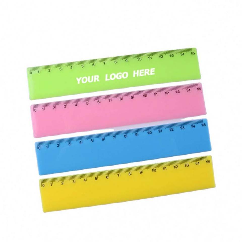 Regla Promocional Portátil de 6 Pulgadas de ABS en Color Caramelo Personalizada con Logotipo Impreso en Serigrafía para Estudiantes y Eventos