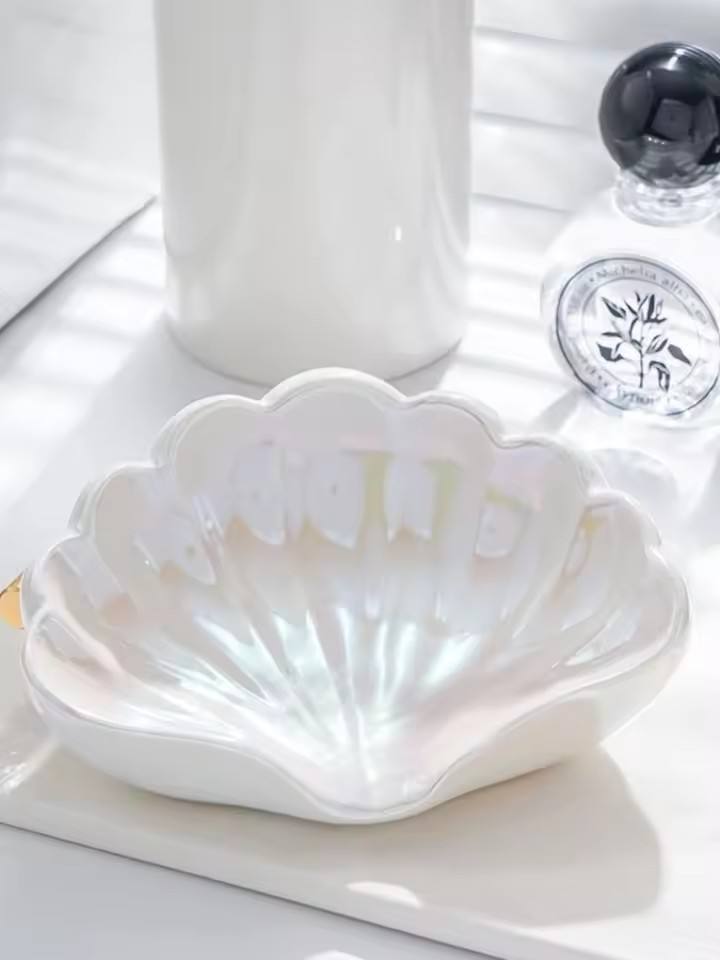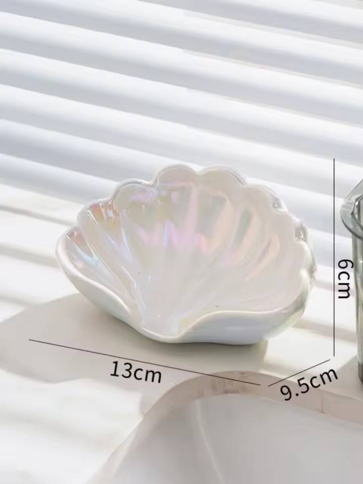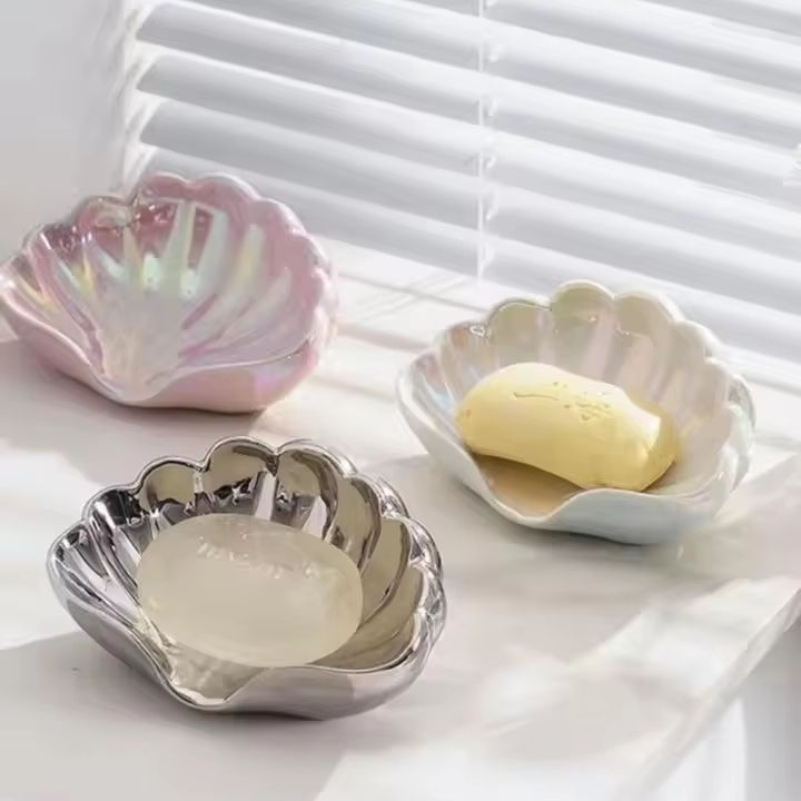 Jabonera en forma de concha con drenaje para uso doméstico.