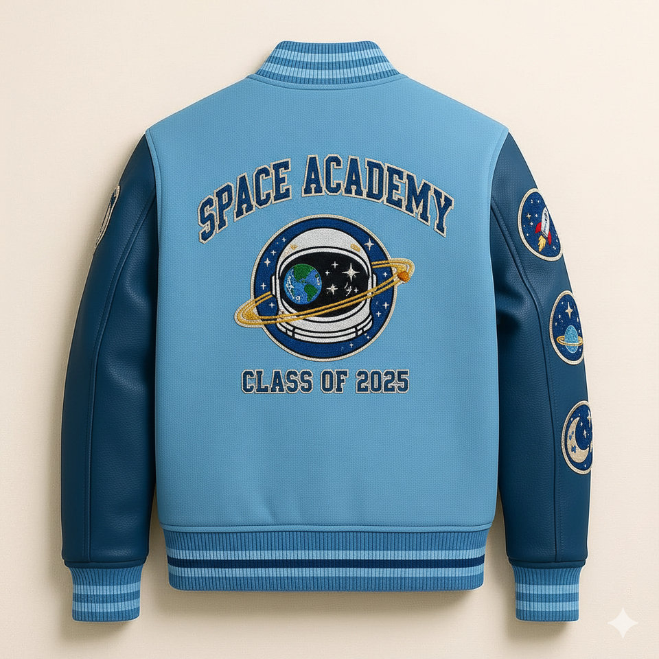Chaqueta universitaria con parche de chenilla personalizada | Letterman High Street Style Stand Collar 100% algodón para hombres y mujeres